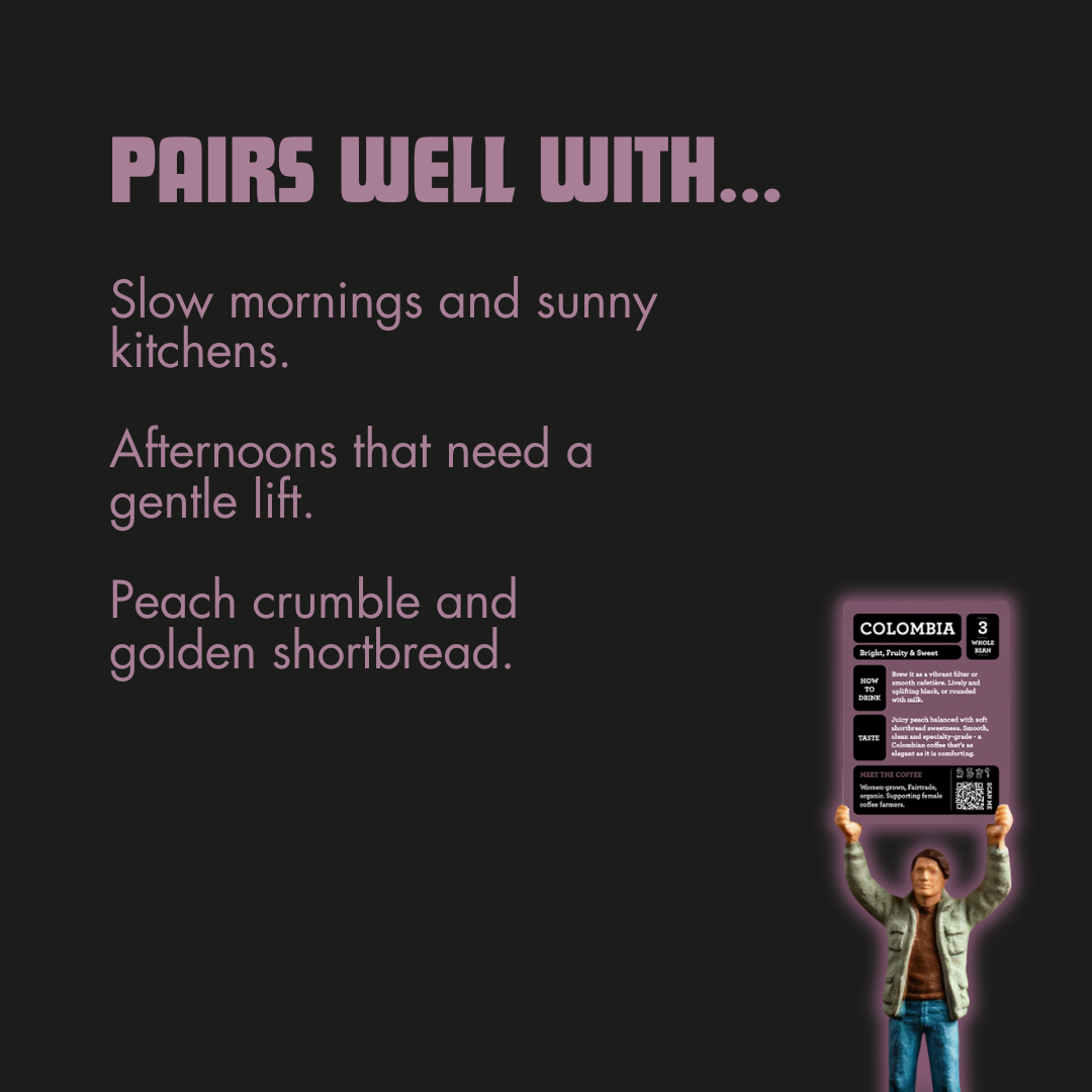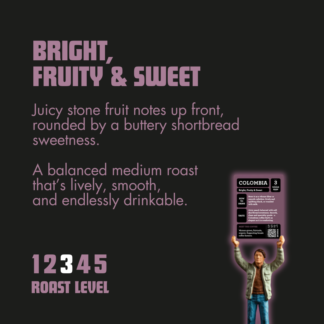 …you want to explore the best of Colombian coffee without committing to one brew style. Bright and juicy for filter fans, sweet and dessert-like for espresso lovers, this is a single origin that does it all — lively enough to notice, smooth enough to drink every day.