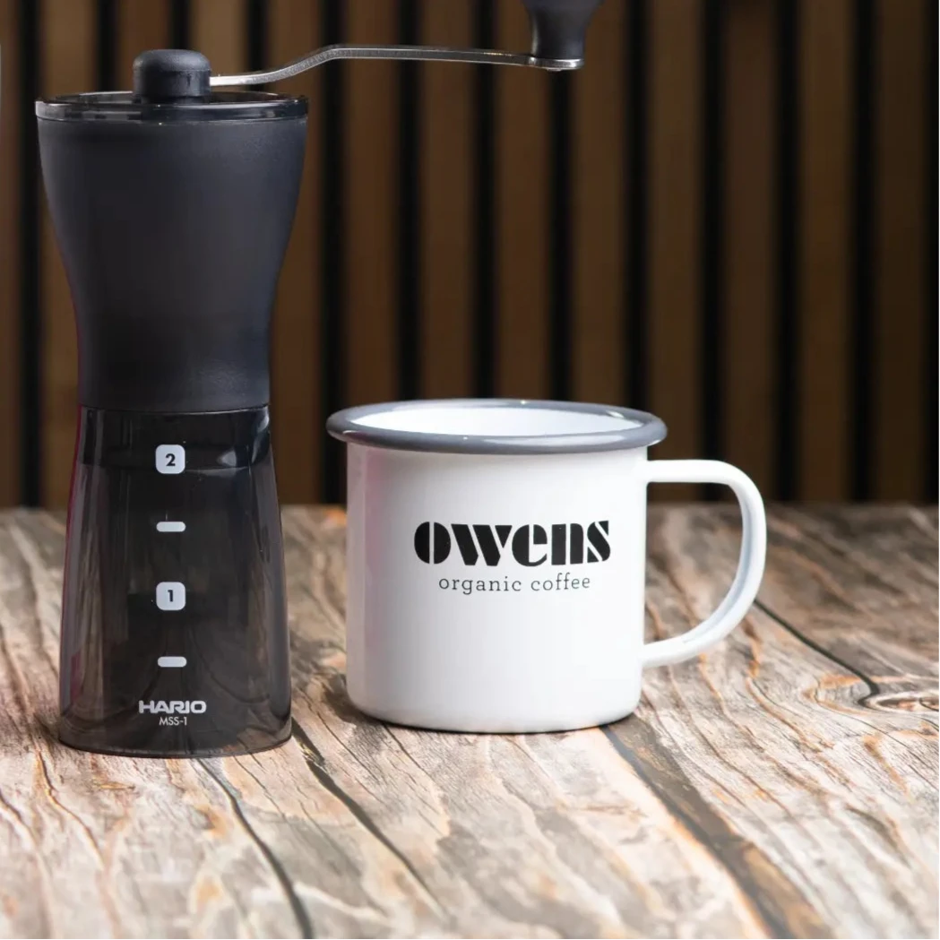 Enjoy your coffee outdoors with our Owens Enamel Mug...the perfect mug for camping, travel adventures or anyone that loves the great outdoors!