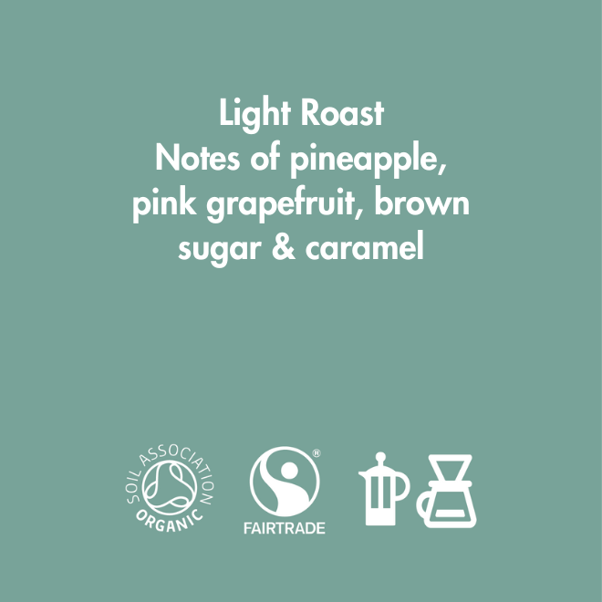 Light-roasted for a creamy body, with notes of pineapple, pink grapefruit, brown sugar & caramel.